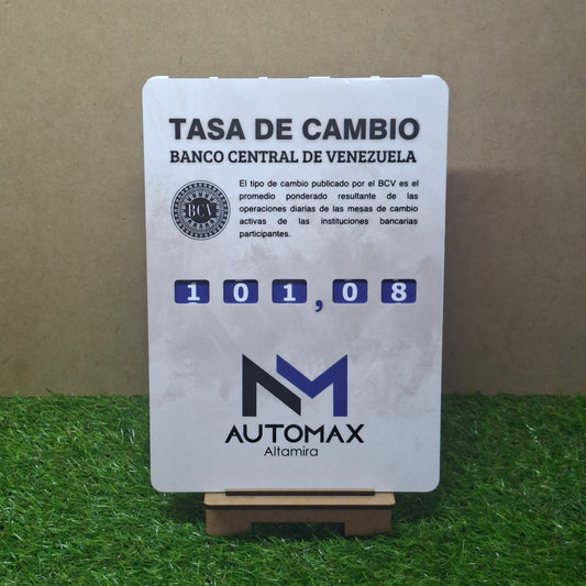 Hablador tasa BCV en acrilico blanco sublimado full color con números integrados