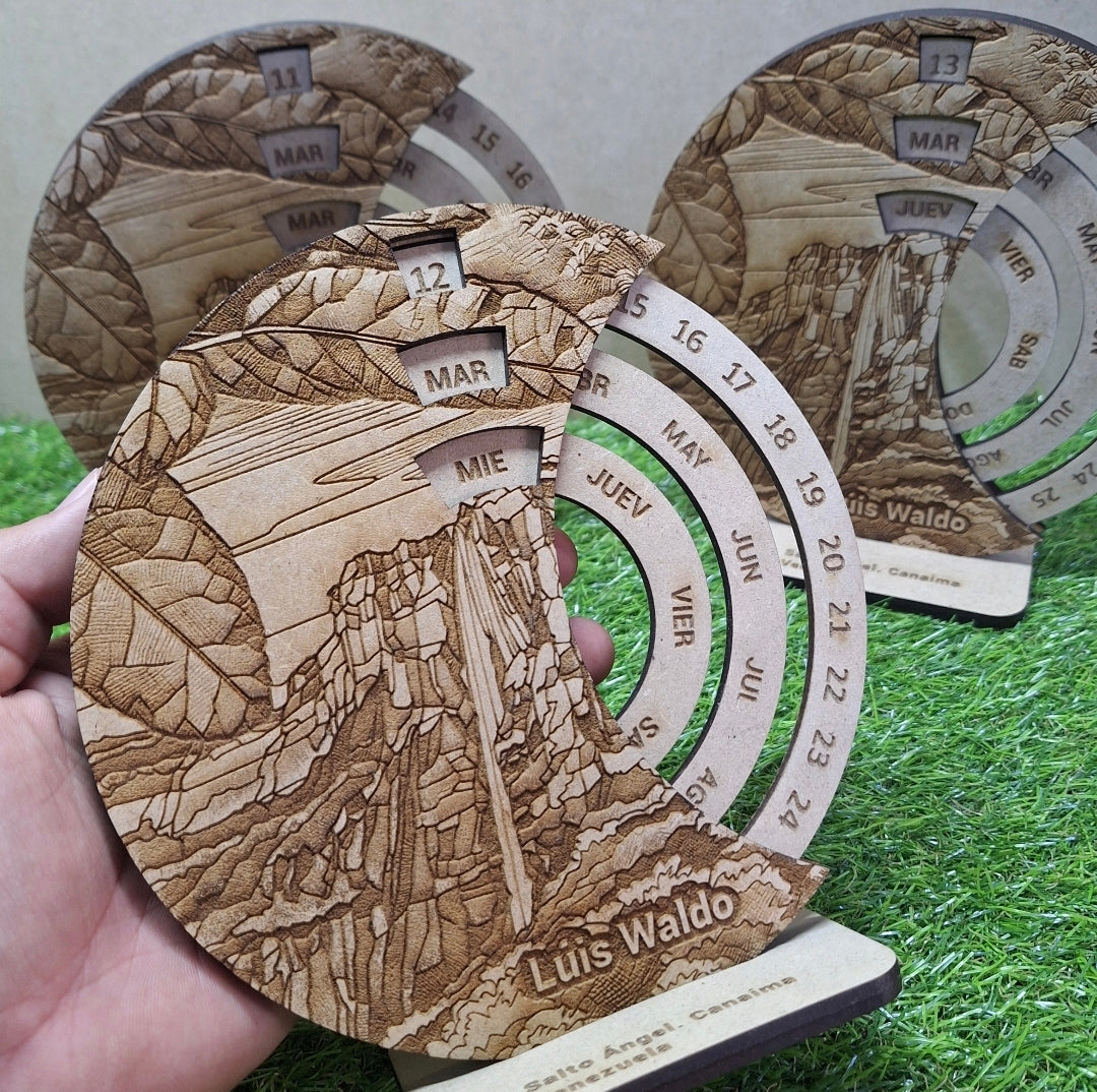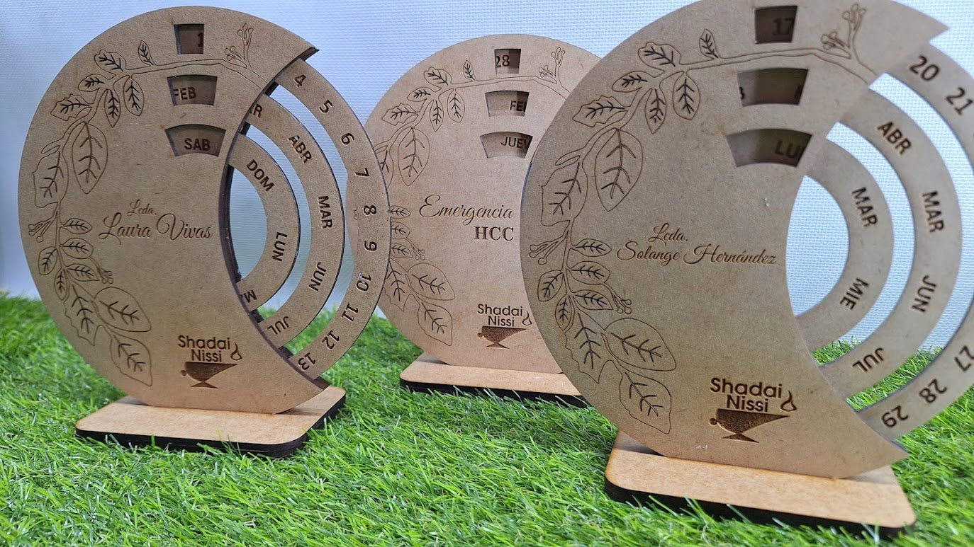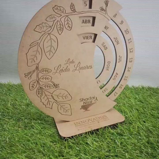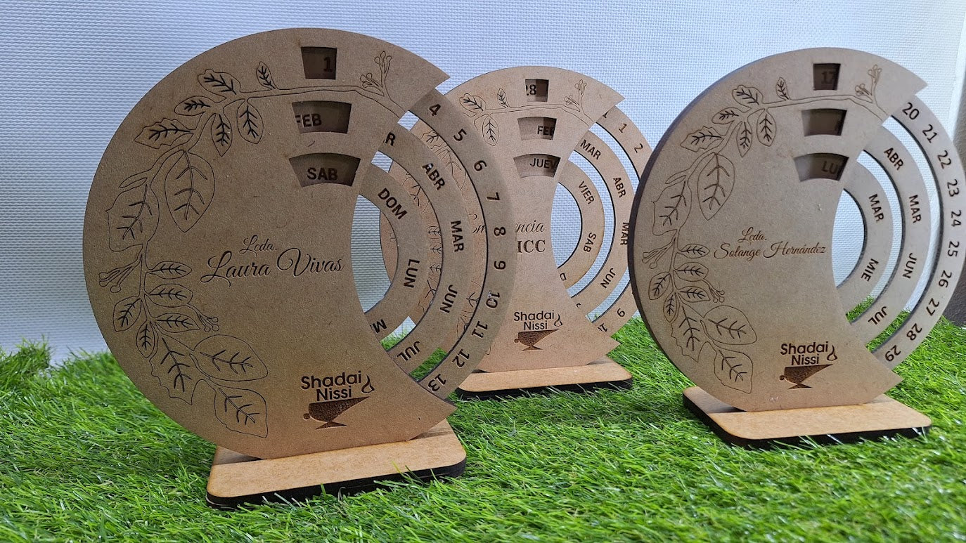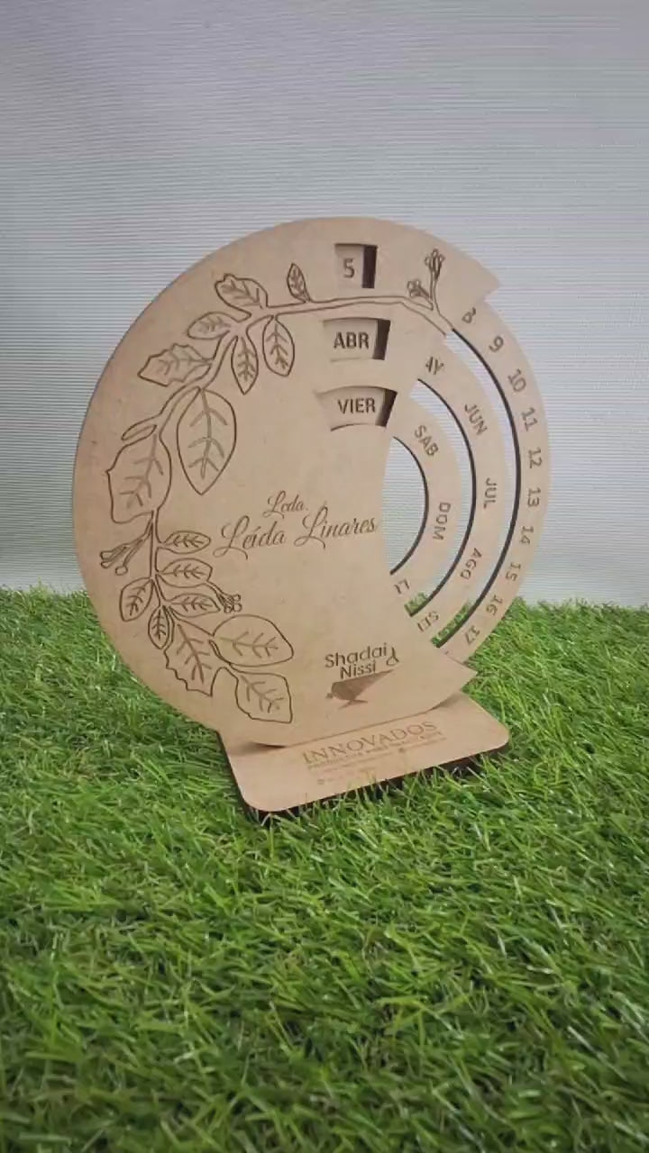 Este elegante calendario perpetuo es una combinación perfecta de funcionalidad y estilo. Fabricado con precisión en corte láser, cuenta con un diseño giratorio que permite ajustar la fecha y el mes de manera sencilla y conveniente. El material de MDF de 3 mm de espesor garantiza su durabilidad y resistencia, mientras que el grabado láser personalizado le brinda un toque único y exclusivo.